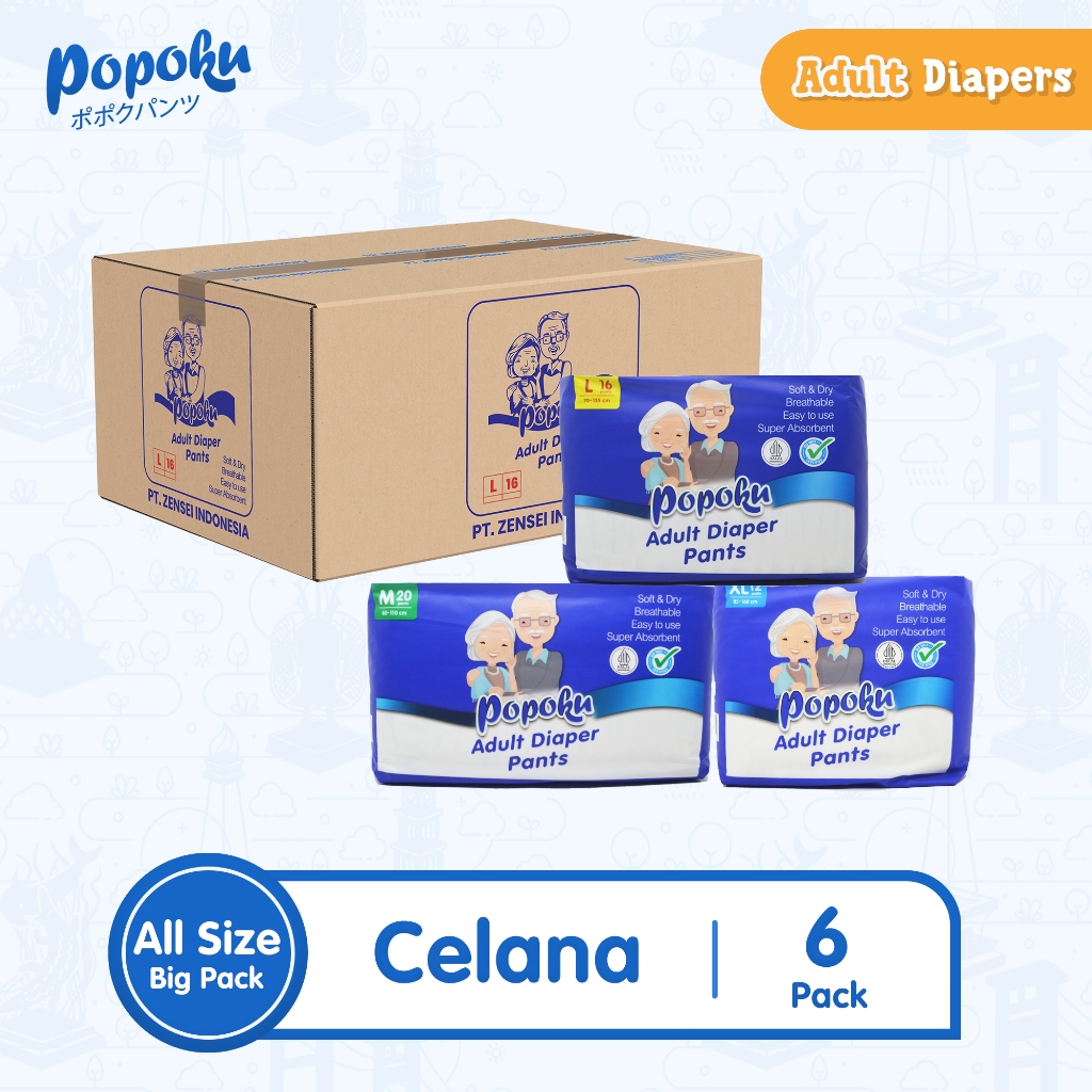 POPOK DEWASA CELANA JUMBO POPOKU PAKET 1 KARTON ISI 6 PACK PAMPERS ORANG TUA PROMO MURAH