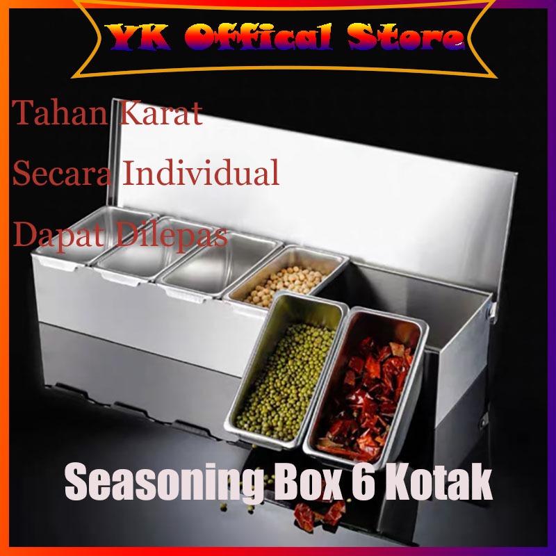 6 in 1 Kotak Bumbu Dapur Stainless 6 Kotak Kotak Bumbu Serbaguna Wadah Penyimpanan Bumbu
