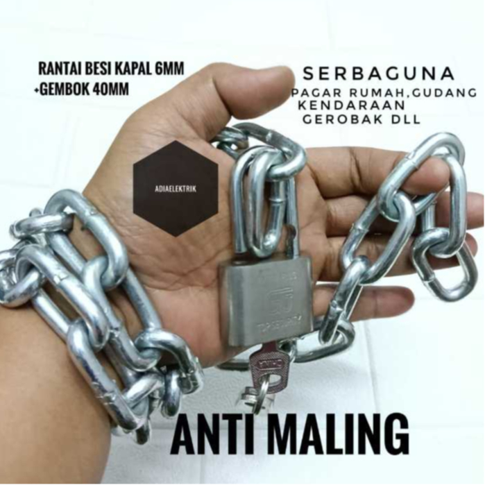Rantai Besi kapal + Gembok 40mm Anti Maling / Rantai Besi 6mm / Gembok Kunci Rumah Pagar Sepeda Motor Termurah / Rantai