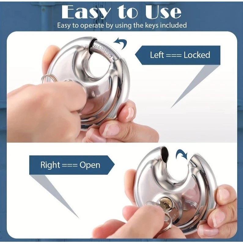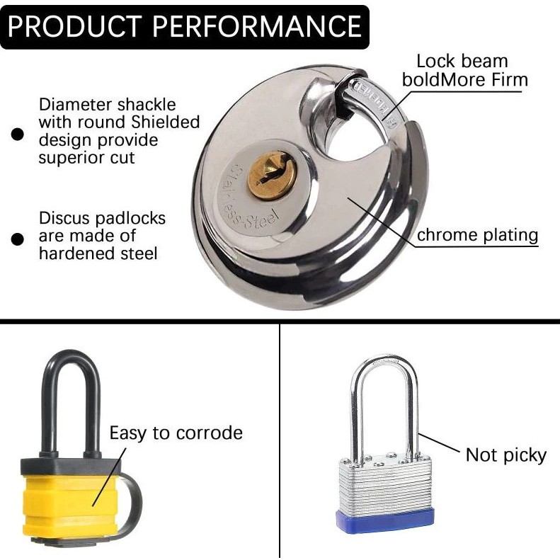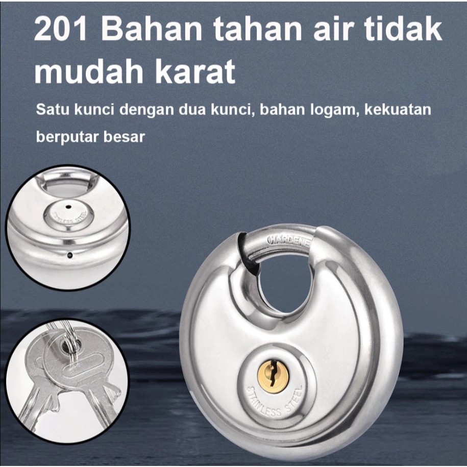 Gembok Bulat Stainless Steel 70mm Dan 90mm Gembok Keamanan Pagar Motor Sepeda Cakram dengan 2 Kunci Padlock