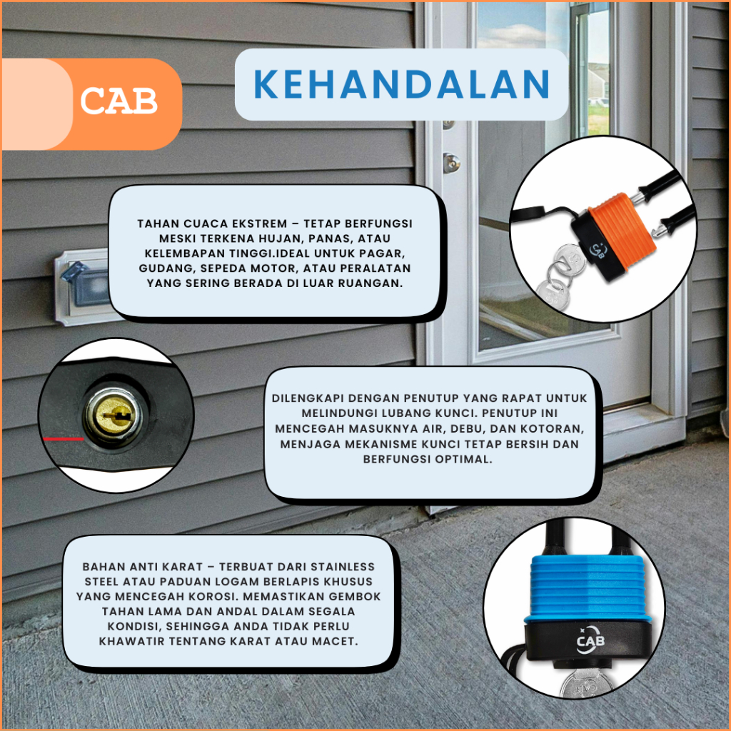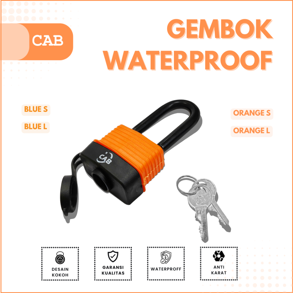 CAB Gembok Waterproof Tahan Air Anti Karat 40mm – Short & Long Premium Padlock Outdoor Indoor