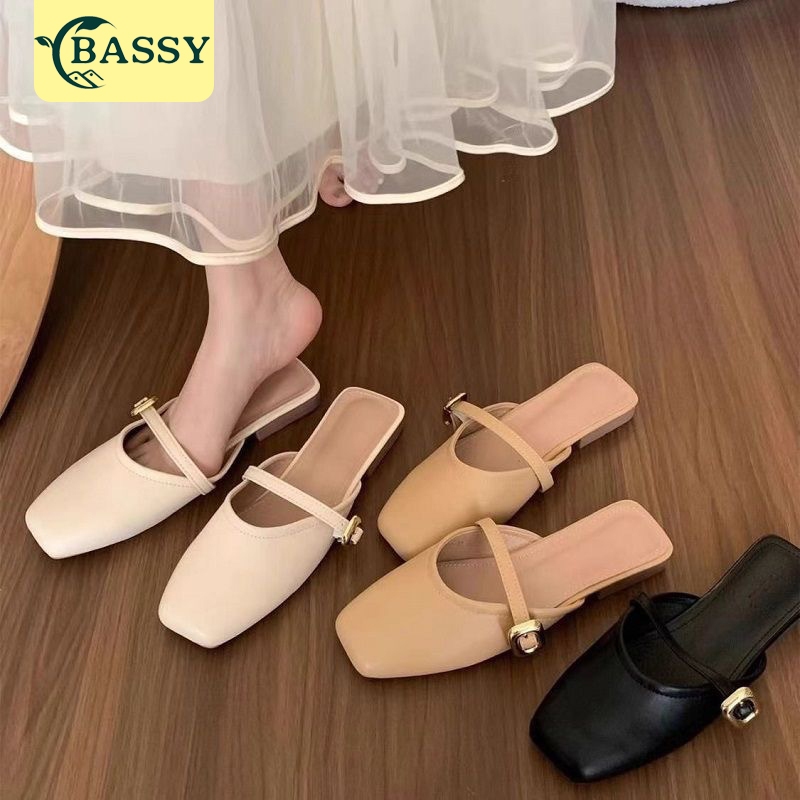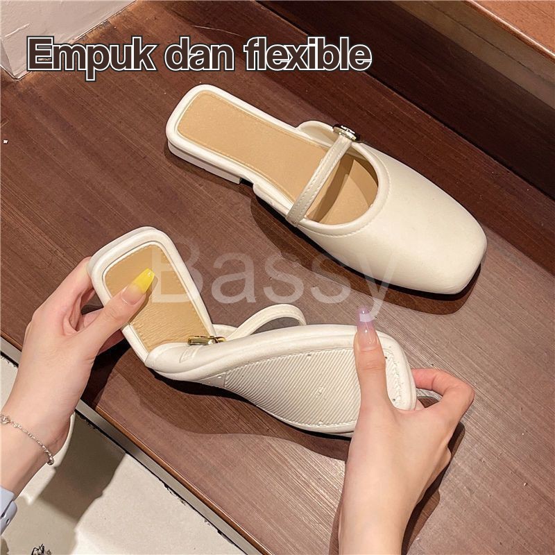 BASSY Sendal Slop Wanita Sandal Flat Anti Slip Kekinian Sendal Karet Jelly Slip On Cewek HES104