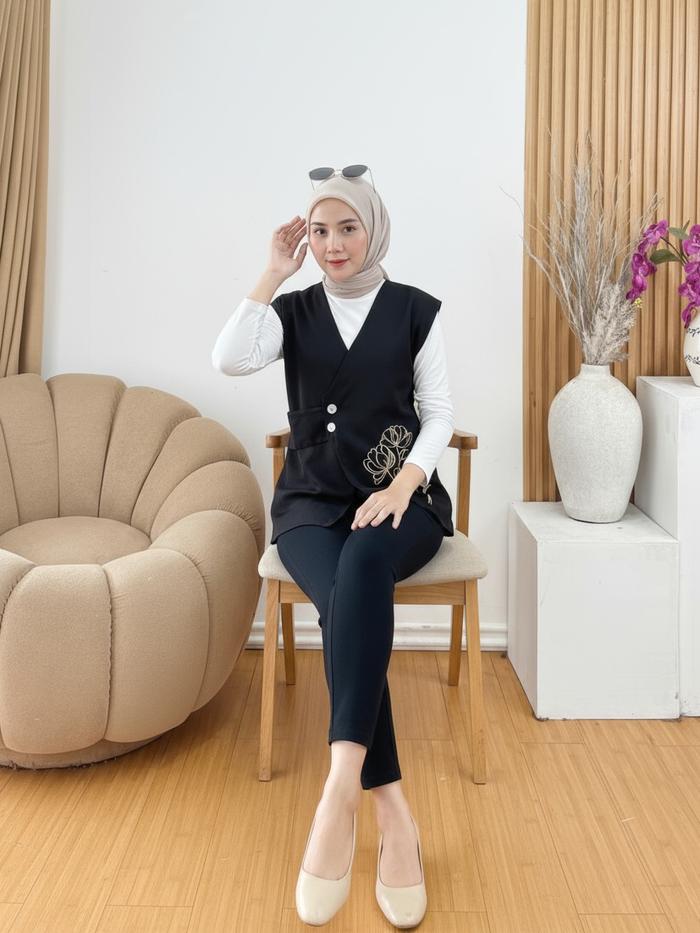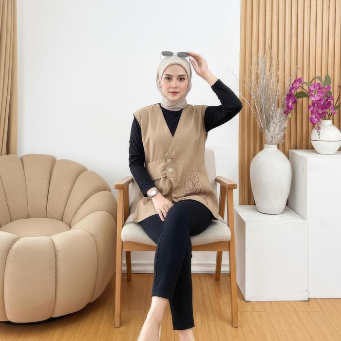 ELEWYS - VEST ROSI TWILL BORDIR WANITA KOREAN STYLE READY JUMBO - LATTE, L