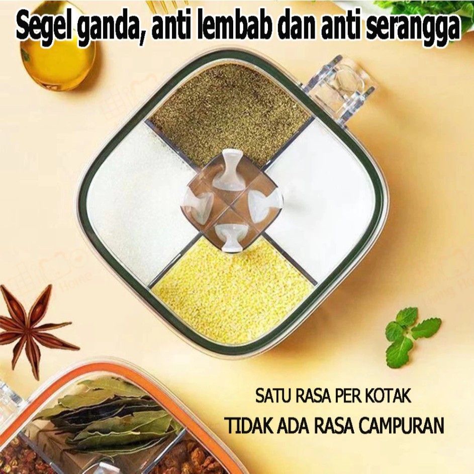 Boselectronic Wadah Bumbu Dapur 4 In 1 Aesthetic Kotak Plastik Penyimpanan Kedap Free Sendok 4 Sekat