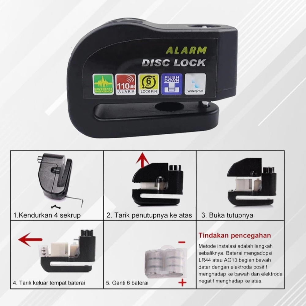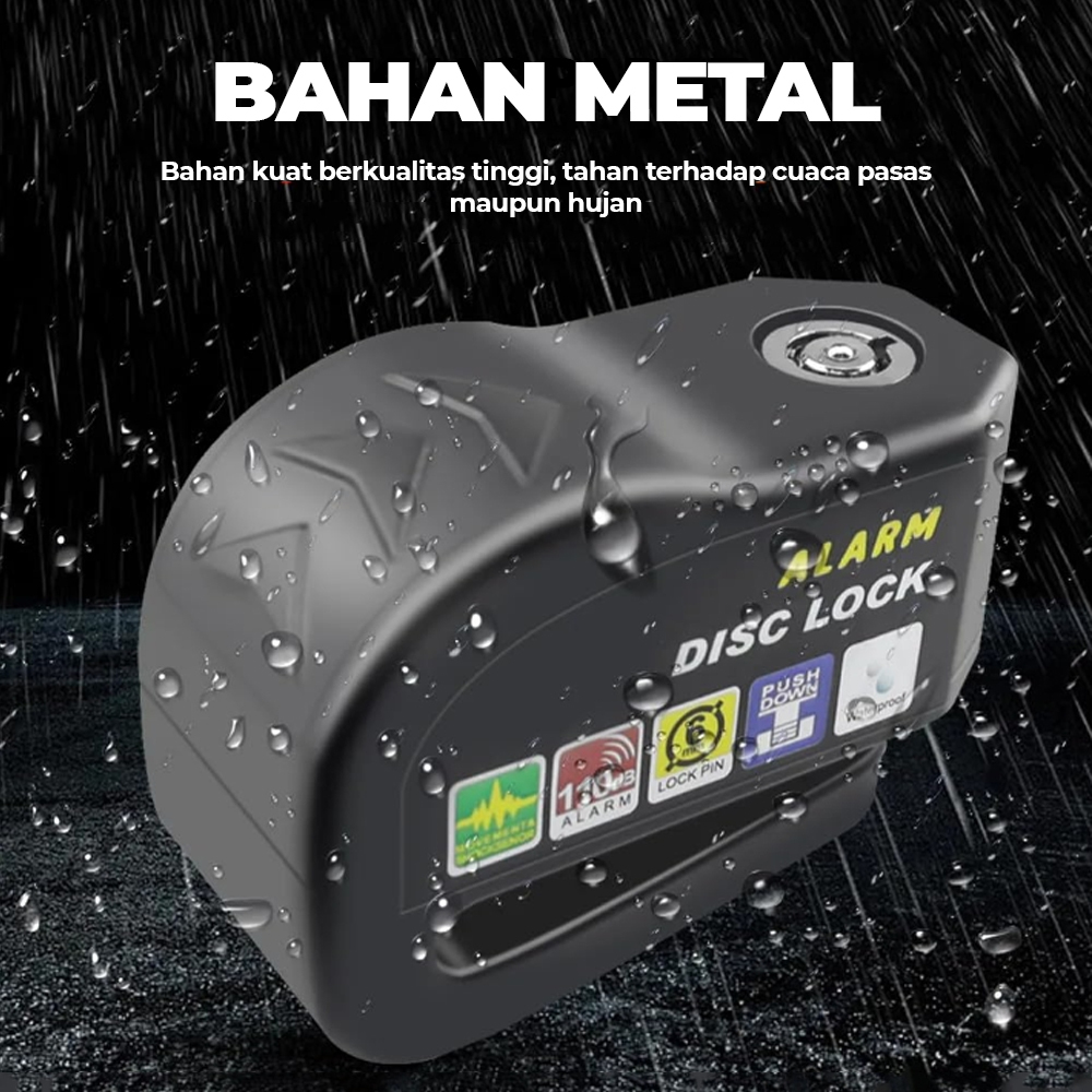 Alarm Gembok Motor Disc Lock Anti Maling Waterproof Bahan Metal Penci Rem Cakram Keamanan Motor