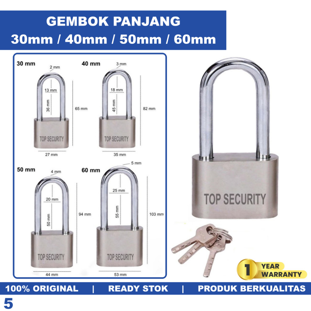 Gembok Panjang Pintu Pagar Rumah Ruko Rolling Door Gudang Toko 30mm 40mm 50mm 60mm Anti Maling
