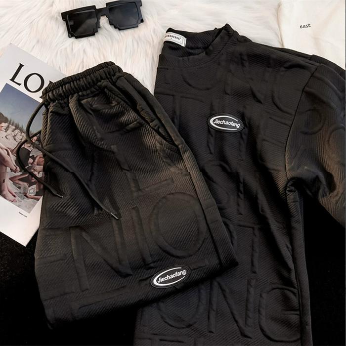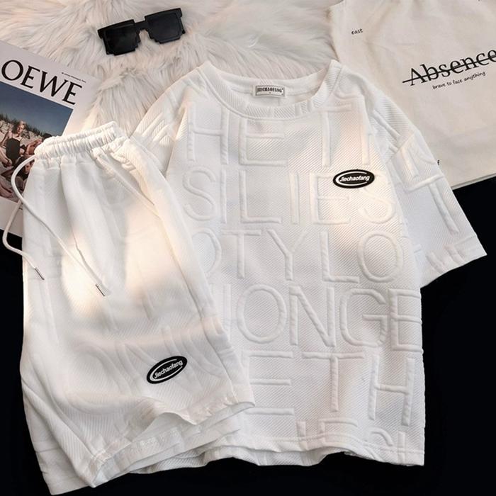 New Promo Baju Setelan Pria 2024 Distro Setelan Kaos Oversize Pria+Celana Pendek Cowok Jumbo=One Set Polos Hitam Puti