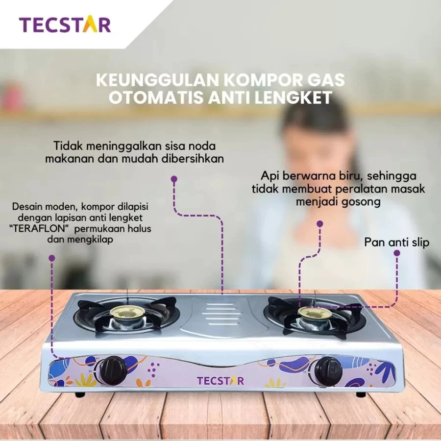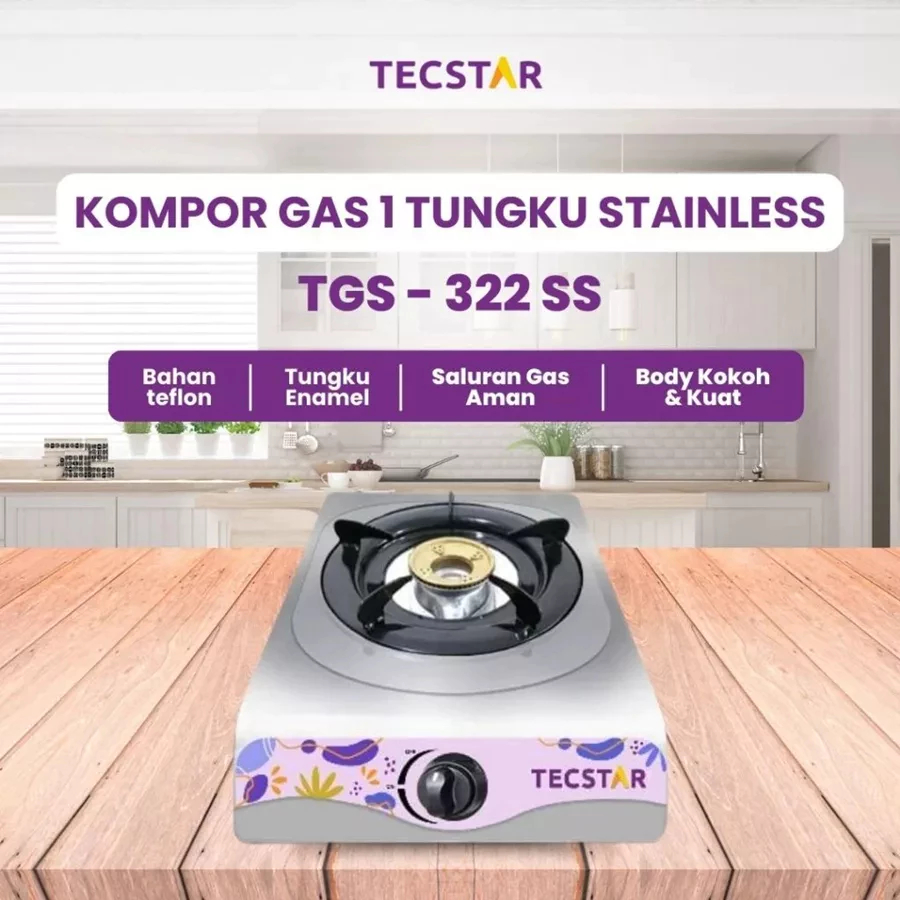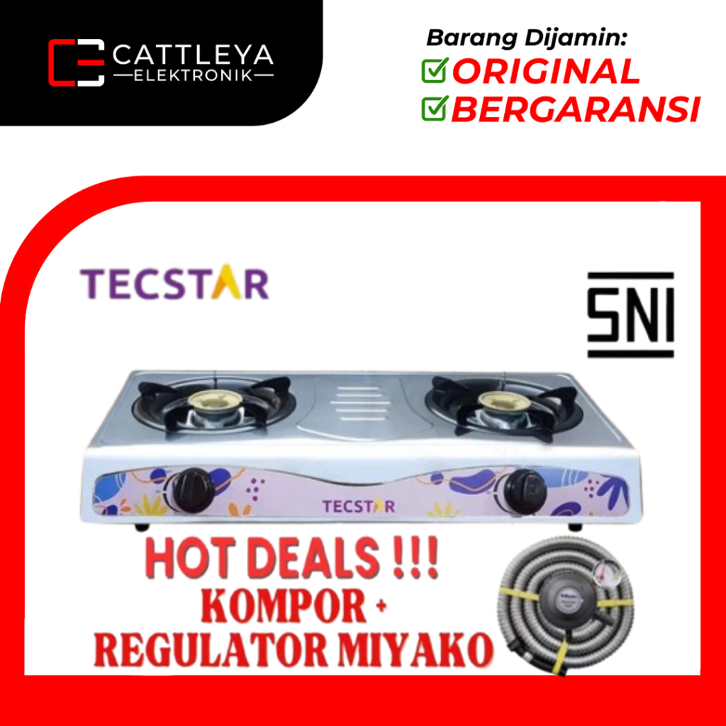 Kompor Gas Tecstar 2 Tungku TGS-322SS Turbo Stenlis Portable Komplit Murah Quantum Tanam Rinnai Miyako Sanex 1 Tungku