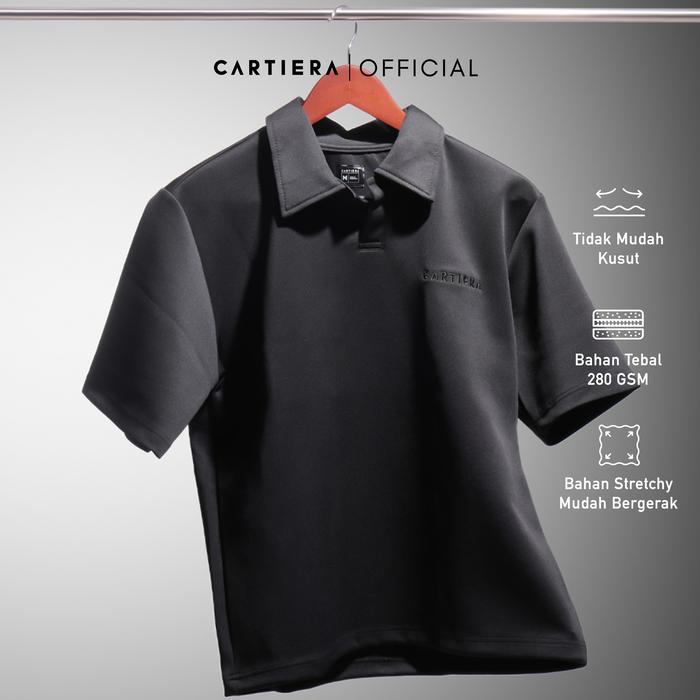 Loco Polo Cartiera Scuba 280 Gsm Boxy Polo Shirt Pria / Kaos Kerah Lengan Pendek - Jet Black, S
