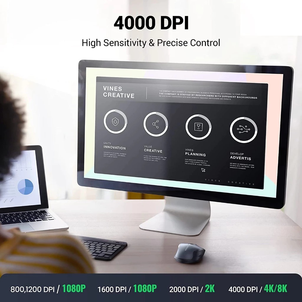 UGREEN Mouse Gaming Wireless 2.4G Dongle + Bluetooth Silent Click 5 level 4000 DPI