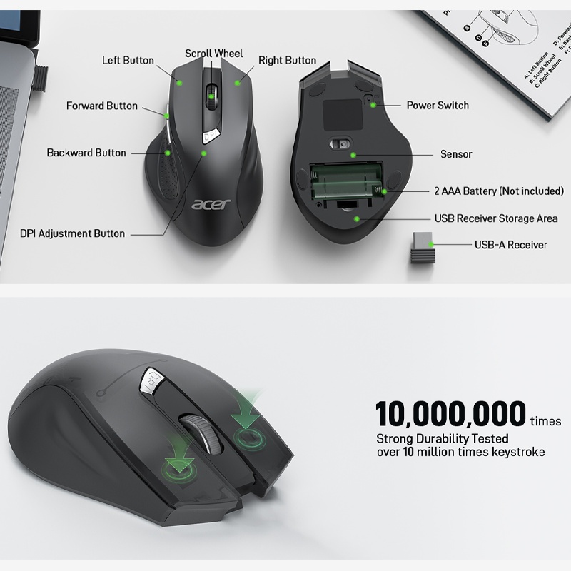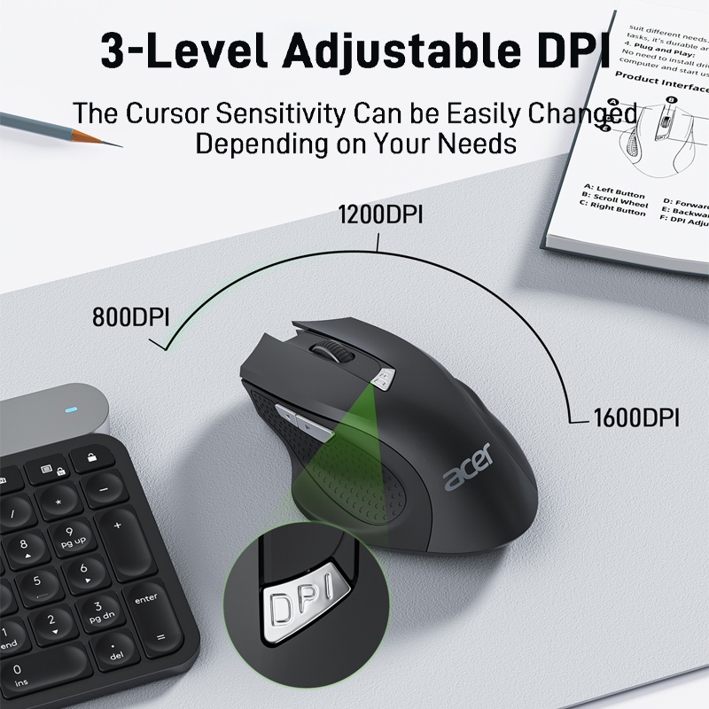 Acer【】Bluetooth Mouse Wireless1600 DPI three-speedPortable Silent Click USB Power Saving Mouse