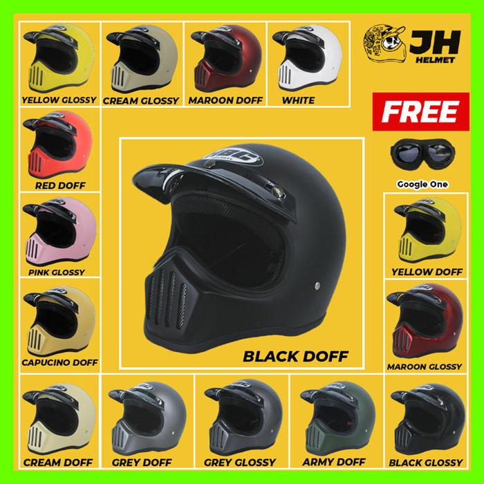HELM CAKIL HBC POLOS+FREE GOOGLE | HELM RETRO | FULL FACE | JUAL HELM - WHITE, HELM AJA