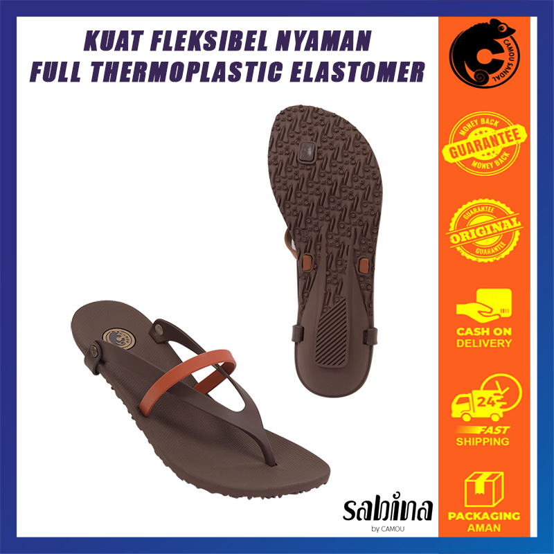 Camou Sandal Jepit Tali Wanita Simpel Kasual Branded Anti Slip Licin Camau Sabina Nougat