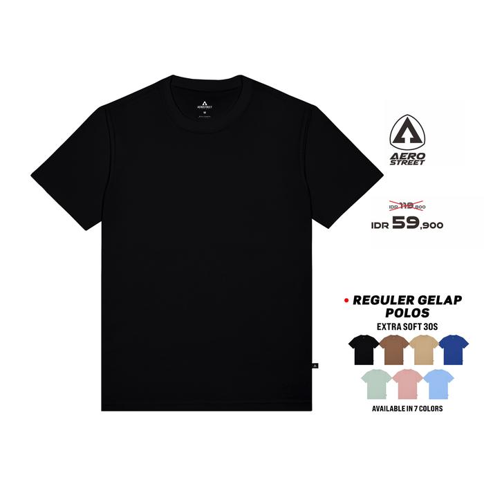 Aerostreet Extra Soft T Shirt Reguler Polos Gelap Kaos T-Shirt Kaaaa - Hitam, S