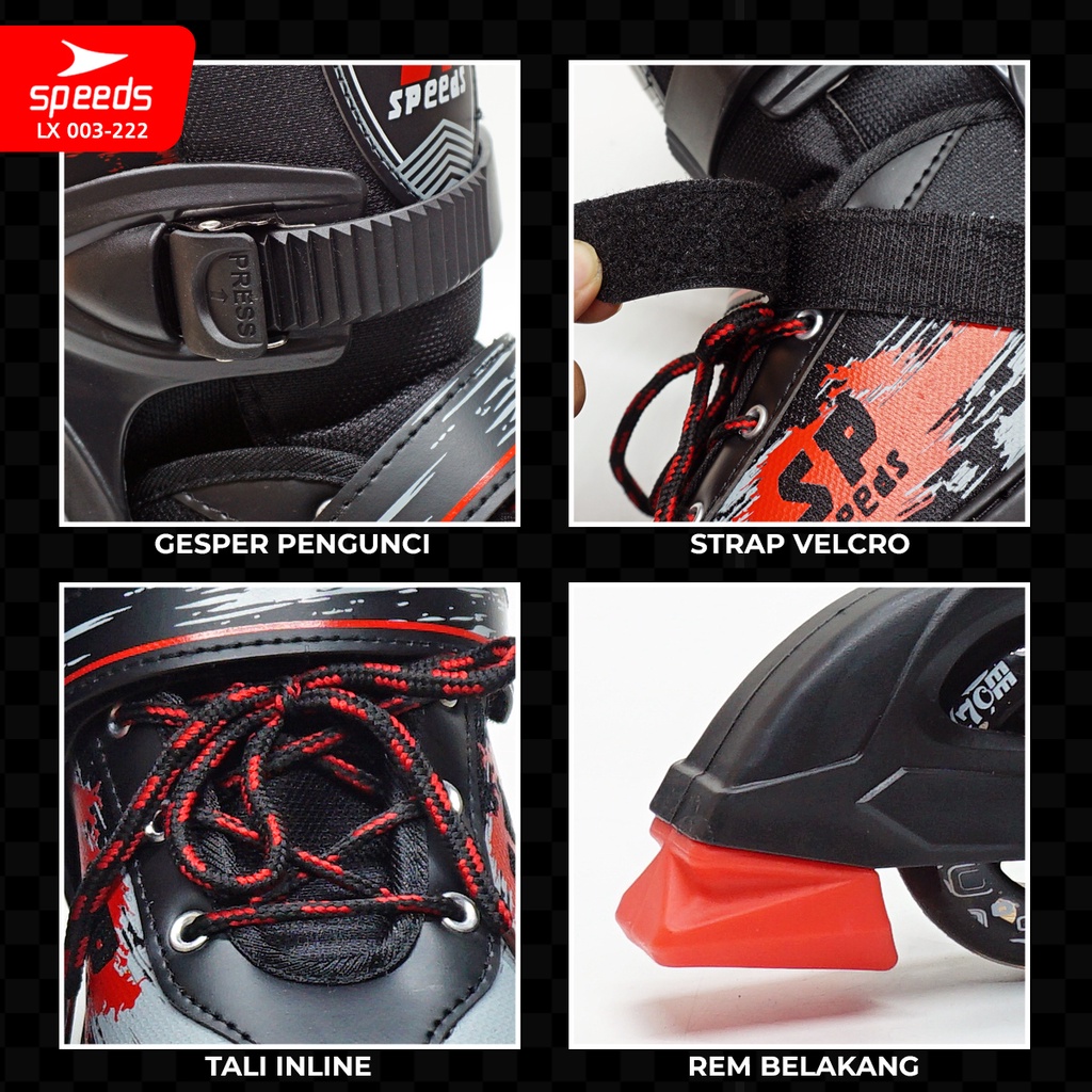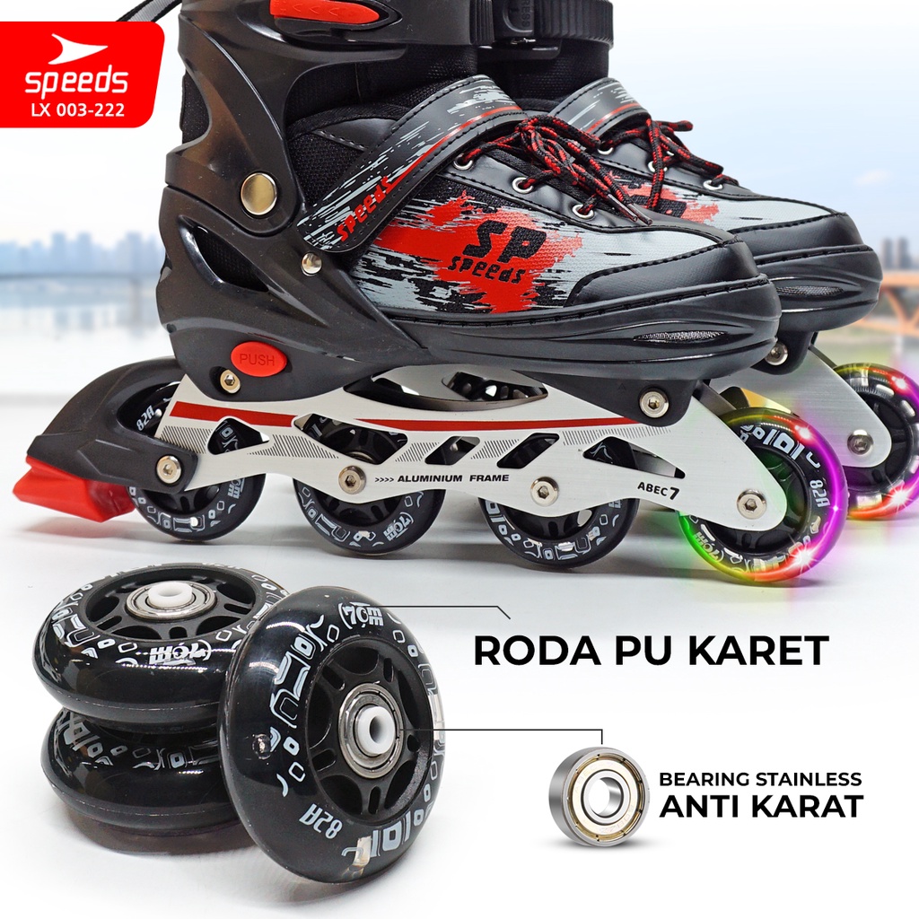 SPEEDS Sepatu Roda Anak Lampu Remaja Inline Skate PU Nyala Roller Skate Laki-laki Perempuan 003-222