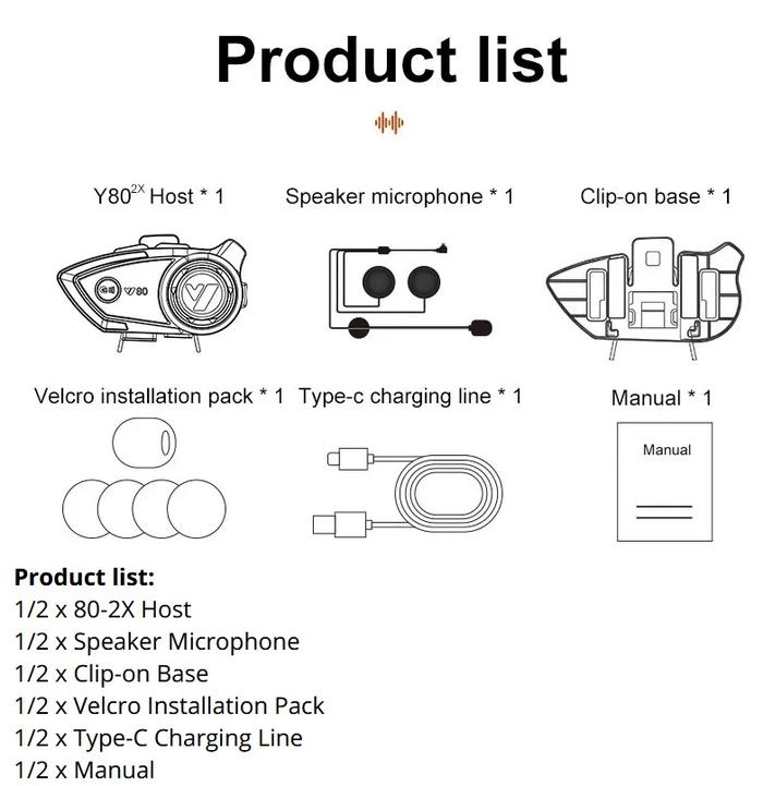 Y80 2X BLUETOOTH INTERCOM 2 RIDERS TYPE C DUAL MIC