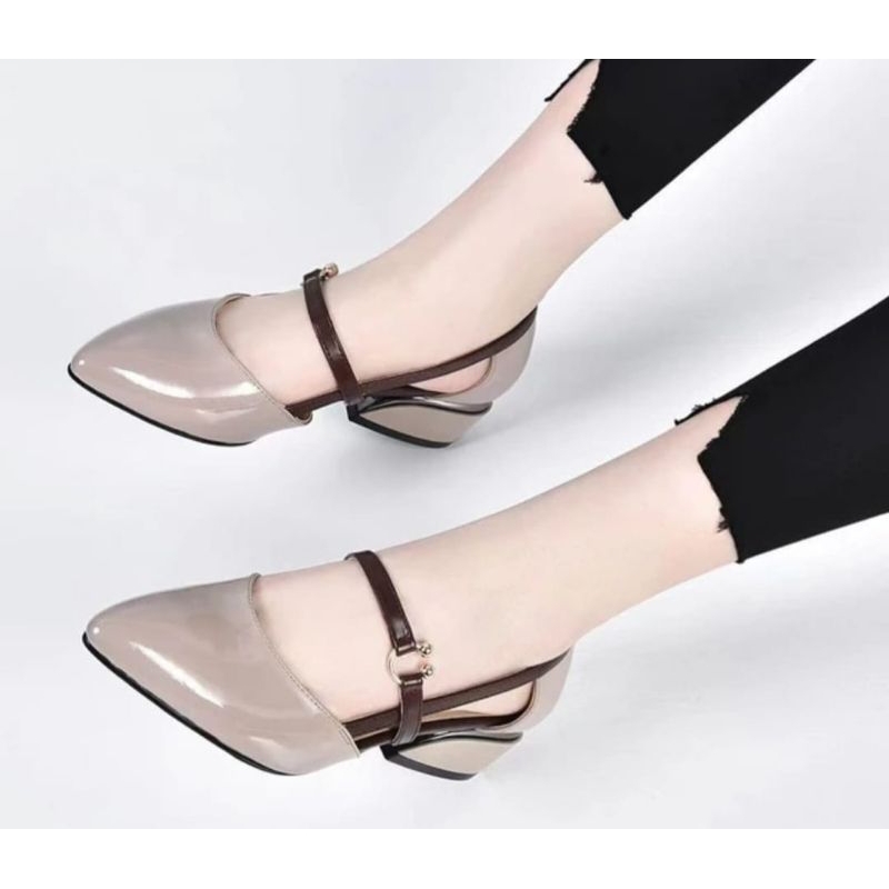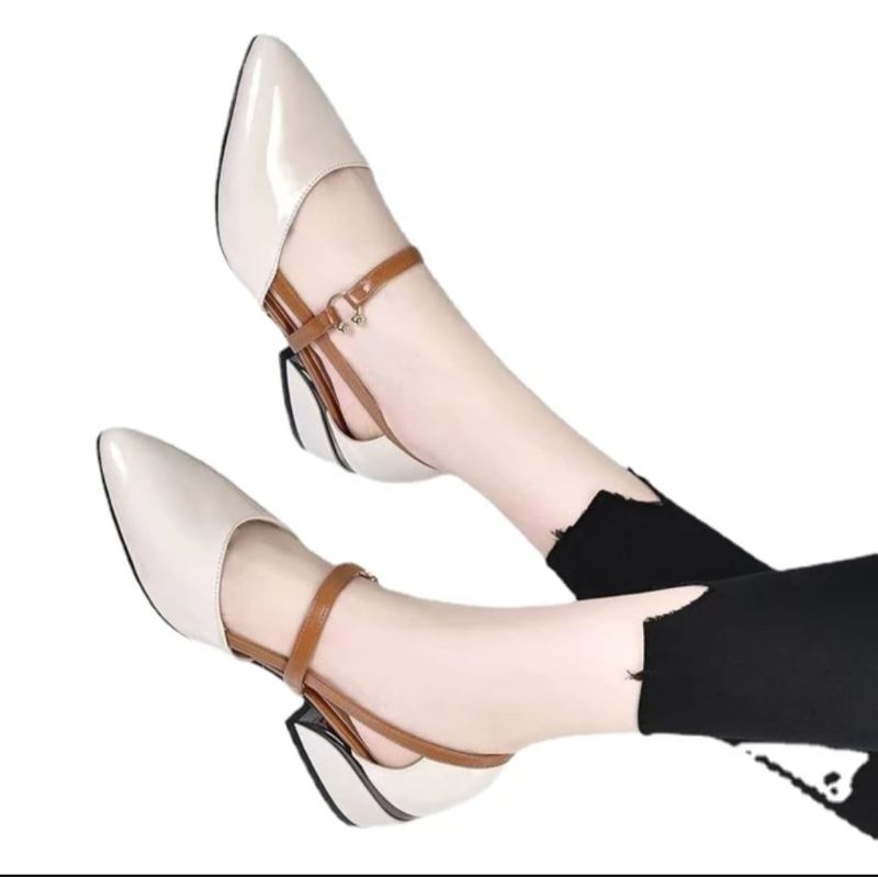 Sepatu wanita heels pantopel pareyasi tali sintetis 3cm branded nyaman di pakai