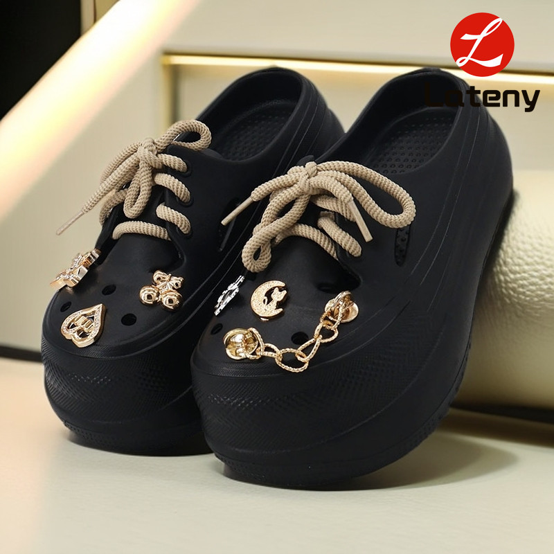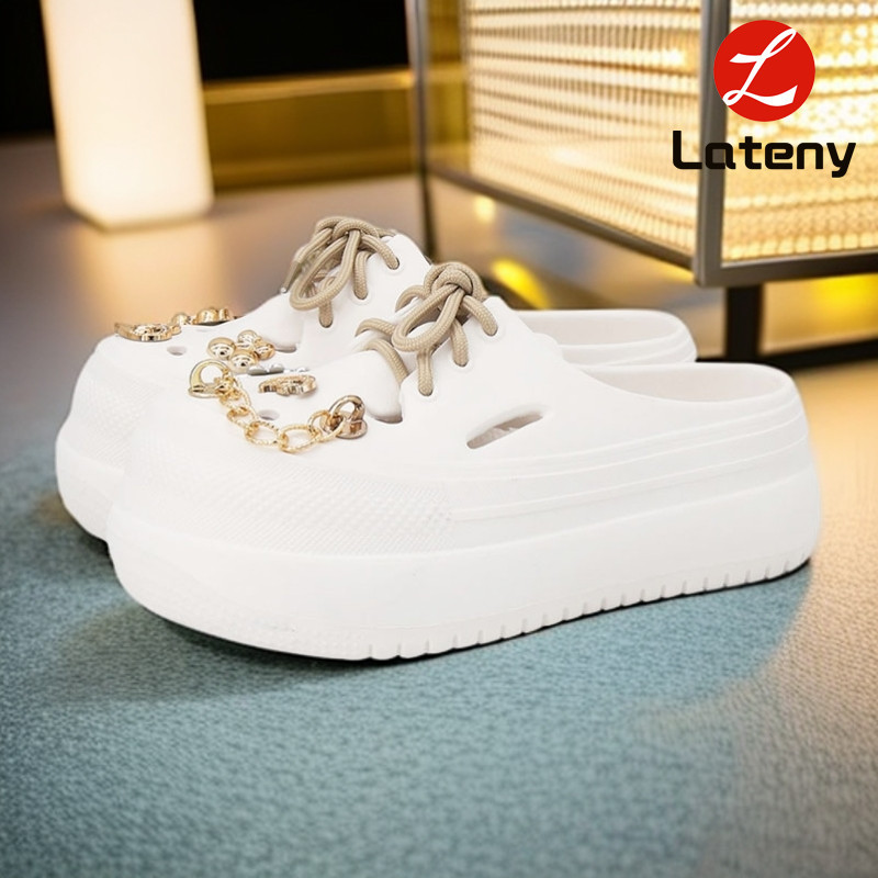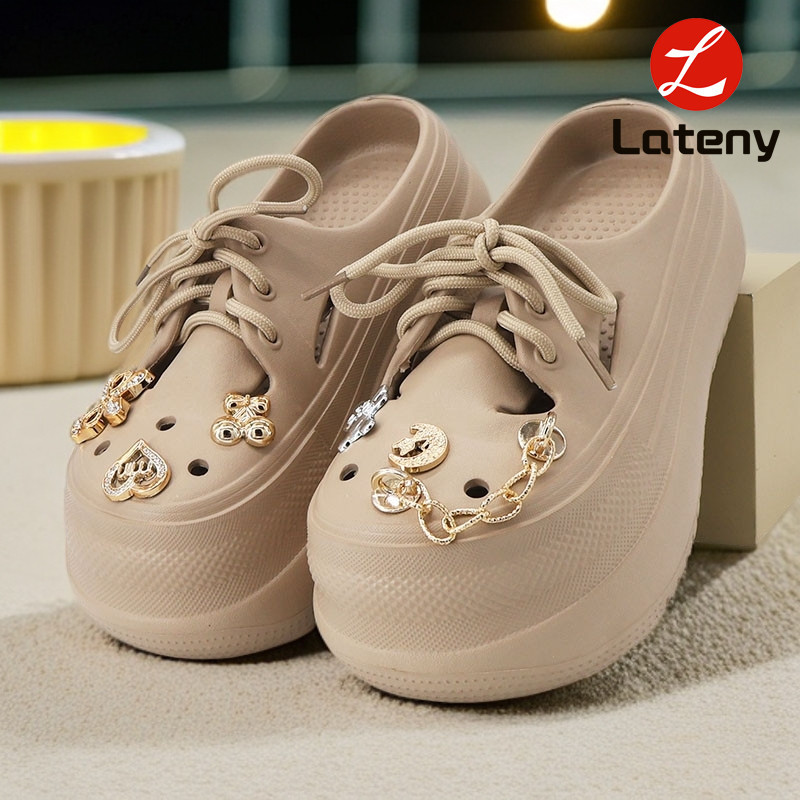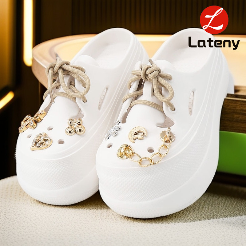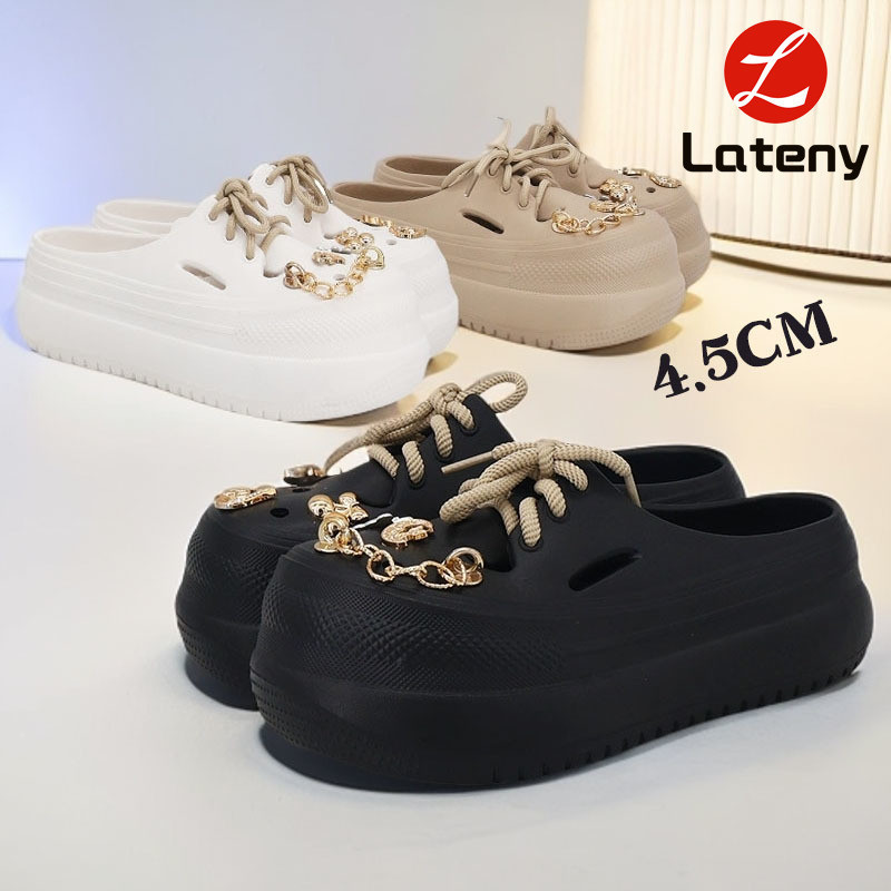 Lateny Sandal baji wanita terbaru sandal katak Aksesoris dengan tali Rantai Tinggi tumit: 4.5cm