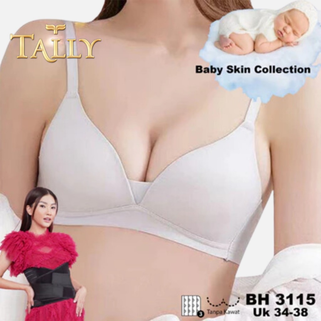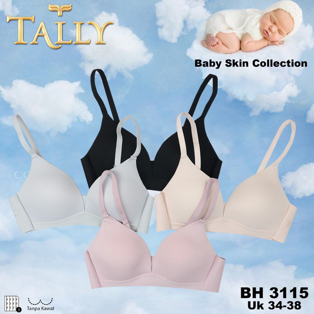 TALLY Sarwendah BH 3115 Bra Tanpa Kawat Busa Tipis Bahan Nilon Seamless Baby Skin CUP A Kait 3 Bra Breatable Pakaian Dalam Wanita Lembut dan Nyaman