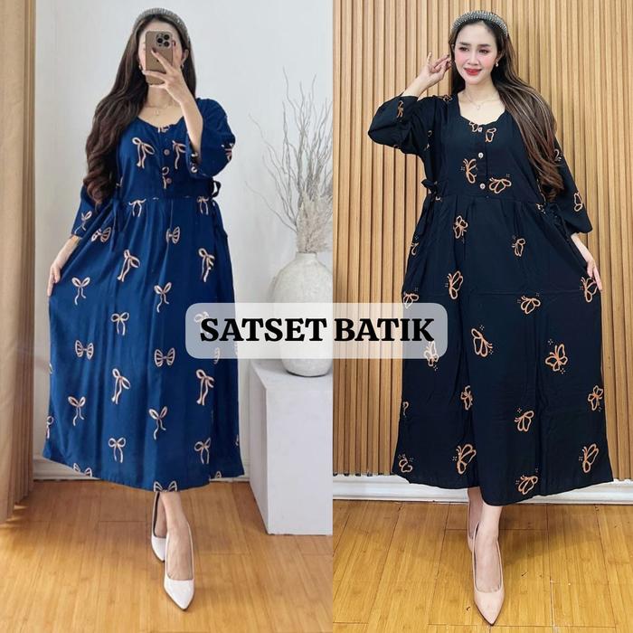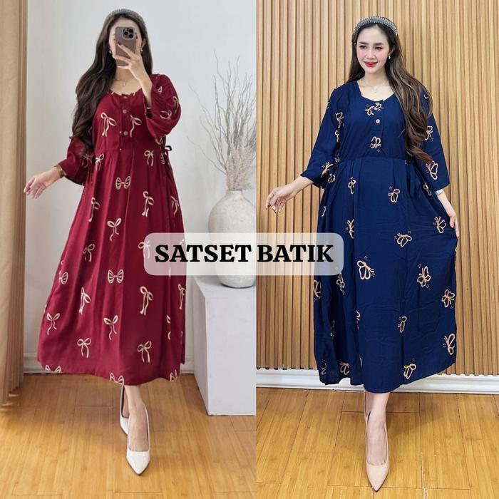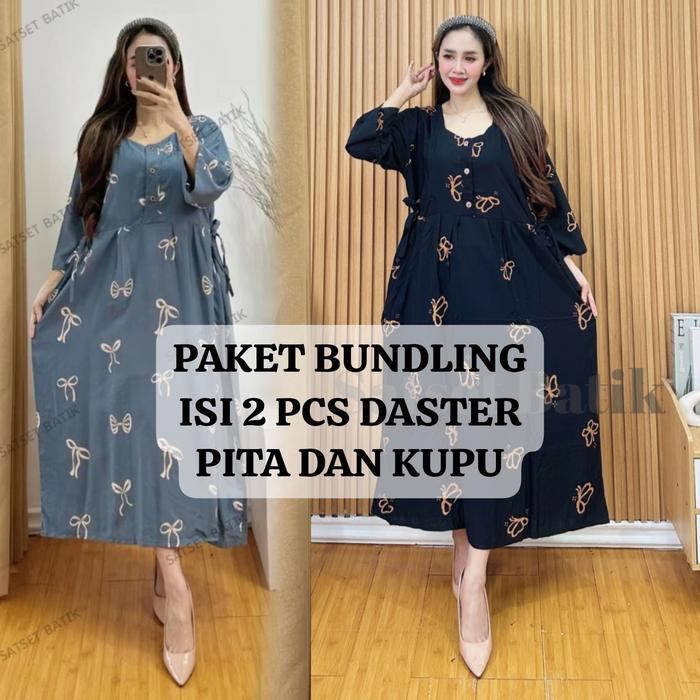 Exclusive Maya Nurmala Bundling Isi 2 Daster Chibi Motif Pita Kupu Bahan Rayon Tebal - Daster Santung 1 Pcs Acak