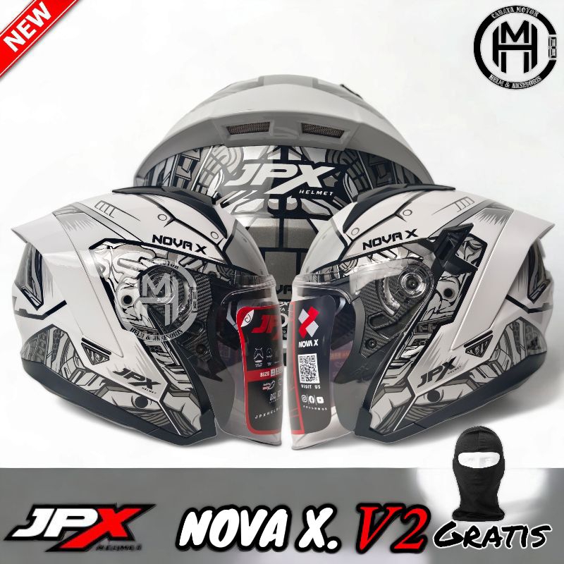 [Star] Helm Jpx Nova X Motif N2 Artic White V2|Half Face Double Visor