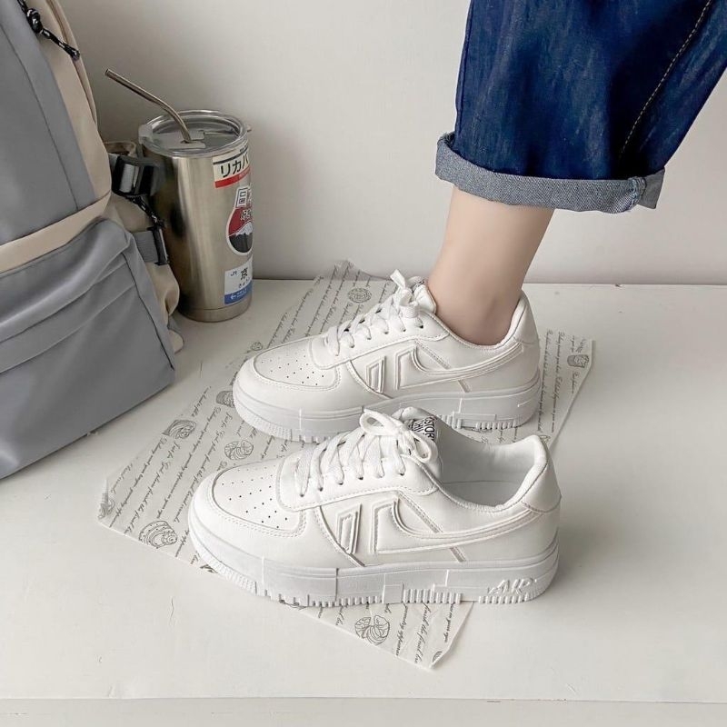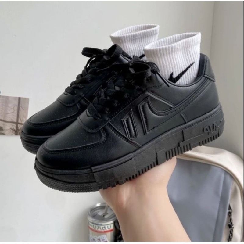 Sepatu Sneakers Wanita Sekolah VL Sepatu Bertali Fashion Ringan Hitam Putih Shoes sport sneaker Olahraga