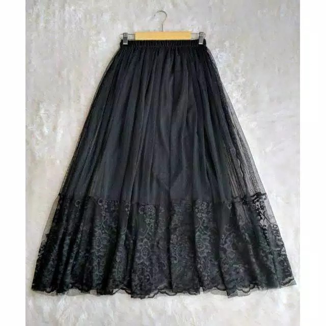 ROK TUTU POLOS KOMBINASI RENDA PREMIUM DEWASA JUMBO MUAT BB 45-75KG