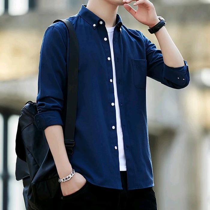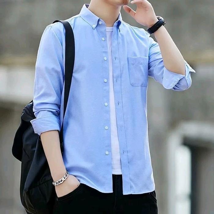 Kemeja Pria Polos Lengan Panjang Bahan Katun Premium Casual Keren Slimfit Formal - Cream, S