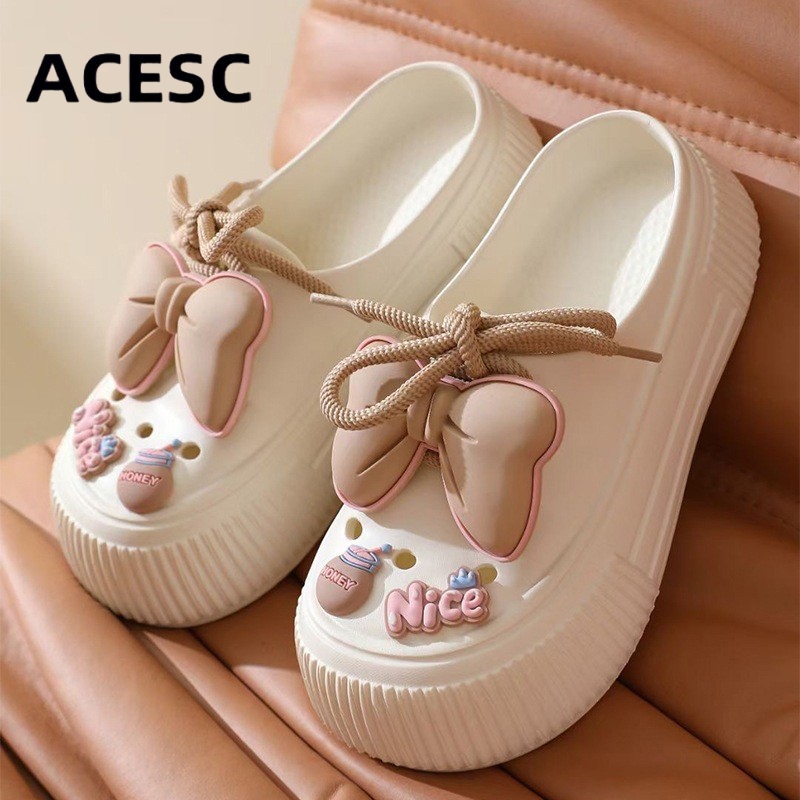 ACESC Sandal Wanita Kekinian Tinggi Empuk Sandal Fuji Wanita Wedges Korea Sandal Jelly Wanita Lace-up
