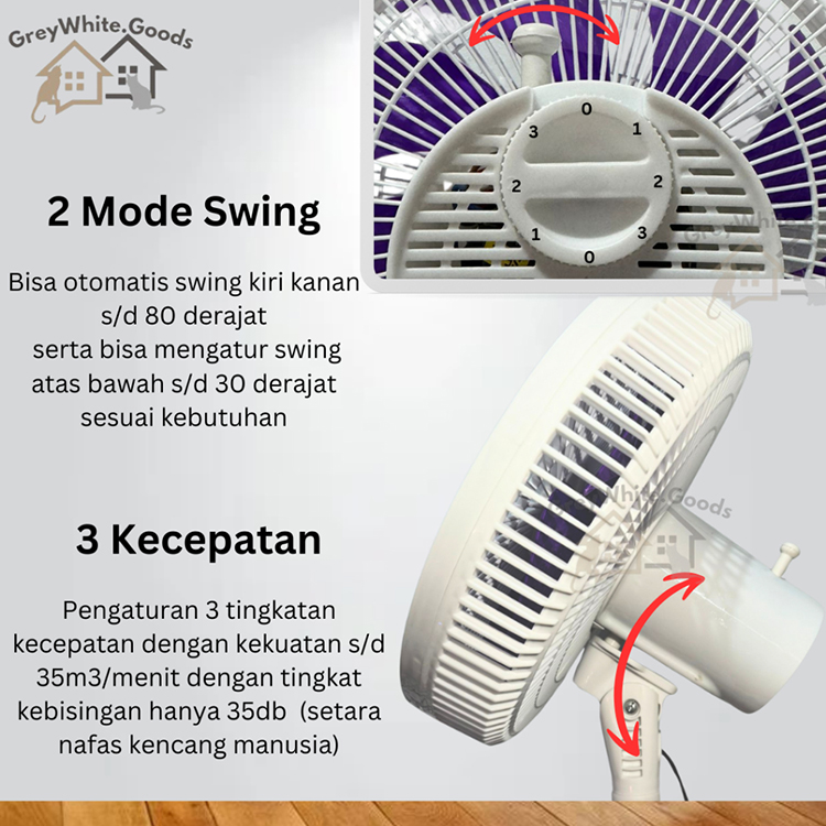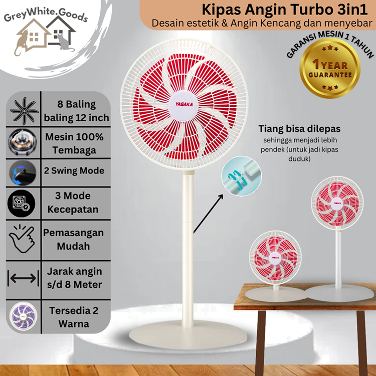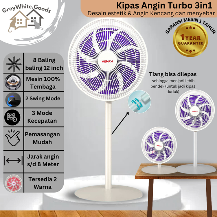 Kipas Angin Berdiri Duduk 2in1 8 Estetik 8 Baling baling 12 Inch Aesthetic Angin Kencang Halus
