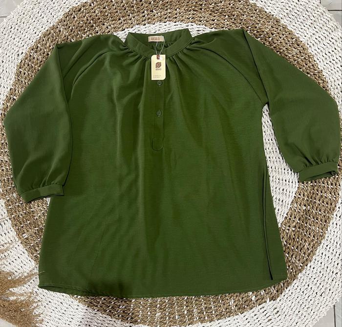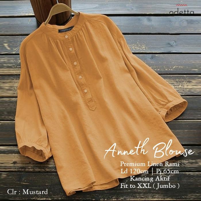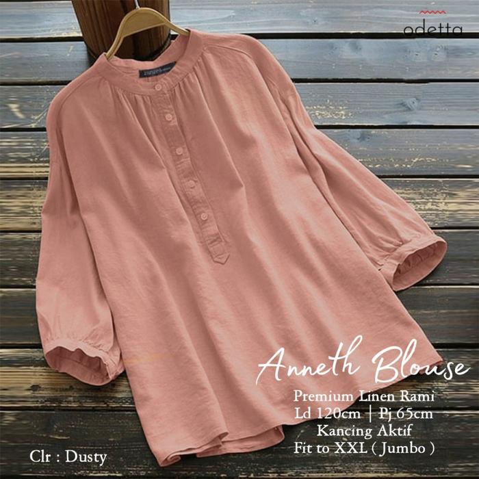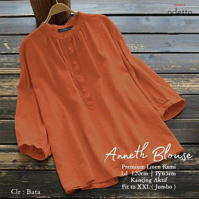 Blouse Jumbo Baju Atasan Wanita Model Terbaru Aneth Basic Linen Rami Airflow Busui Crinkle Kancing Panjang Top Nyaman Ov