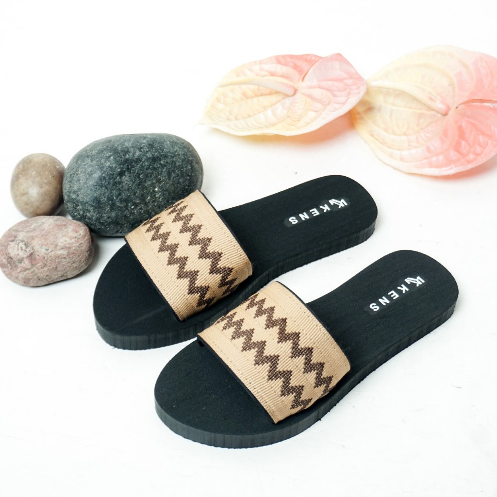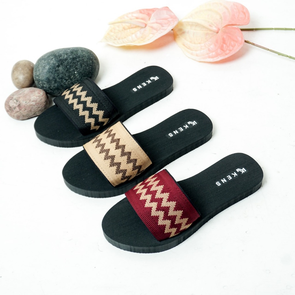 Sandal Flat Wanita Dewasa Selop Rajut Turki Zigzag Tanpa Hak Sendal Kekinian Terbaru Viral