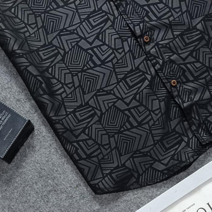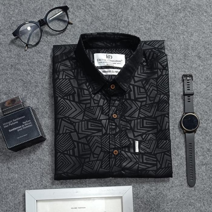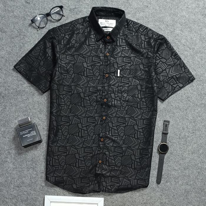 Detak Original Kemeja Embos Sultan Lengan Pendek Pria Hitam Etnik Casual Slim-Fit - Hitam Etnik, M | Medium
