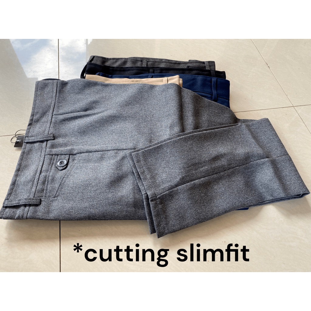 Celana Kantor Formal Kerja Wanita Slimfit Bahan Dasar Kain . Size S-5L Kantong Hitam Navy Abu Putih Skinny Variasi Panja