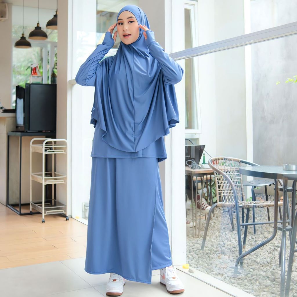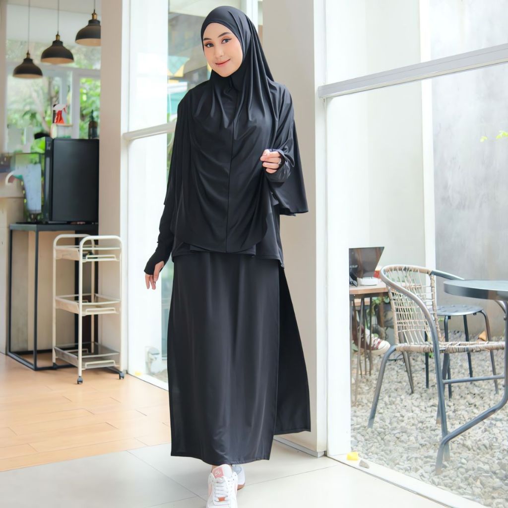 Prqueen | Denay Sporty Muslimah Set 3In1 | Baju Olahraga Wanita Model Rok Celana Hijab | Baju Olah Raga Syar'I Muslimah
