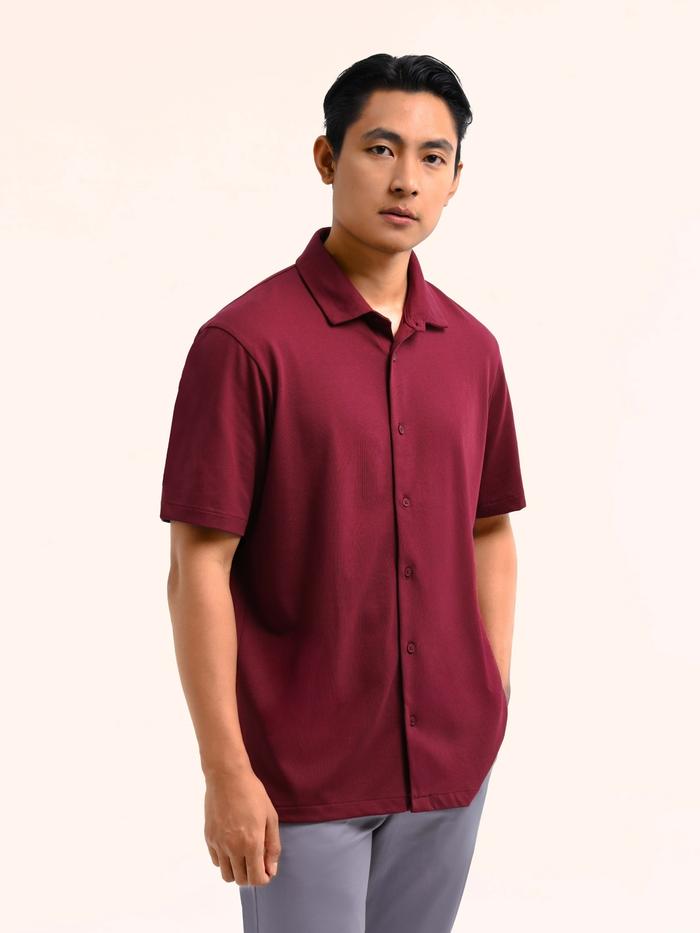 Klotifai - Adem Ss Maroon - Kemeja Lengan Pendek Pria | Lembut, Nyaman, Anti-Kusut - S
