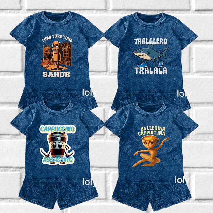 Setelan Anak Usia 1-8 Tahun Denim Anomali Tung Tung Sahur Oneset Anak Cewek Cowok Unisex Denim Oneset Anak Usia 1-8