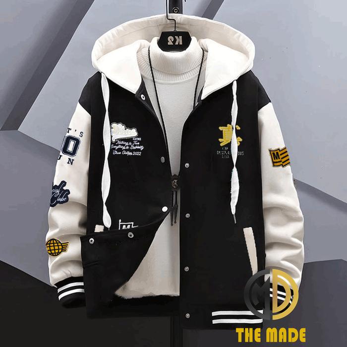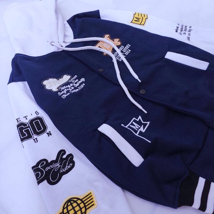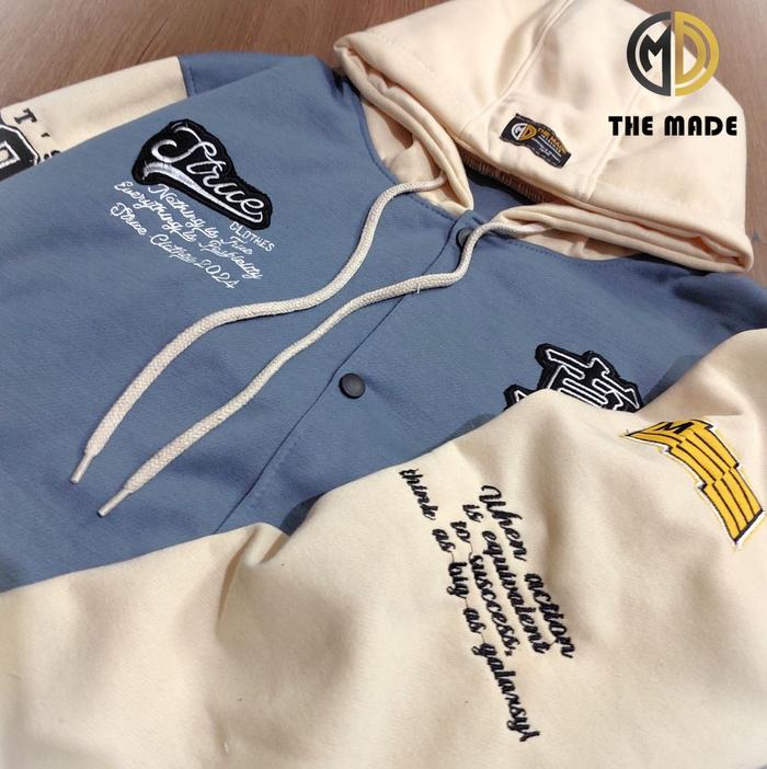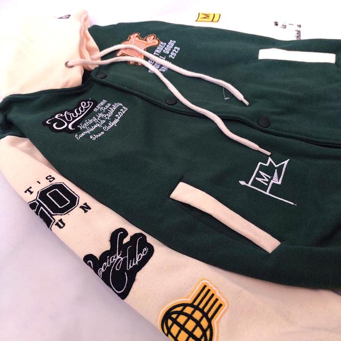 Jaket Hoodie Varsity Bordir Kancing Kupluk Terbaru Untuk Anak Dan Dewasa Laki-Laki Dan Perempuan Bahan Fleece Tebal Kere