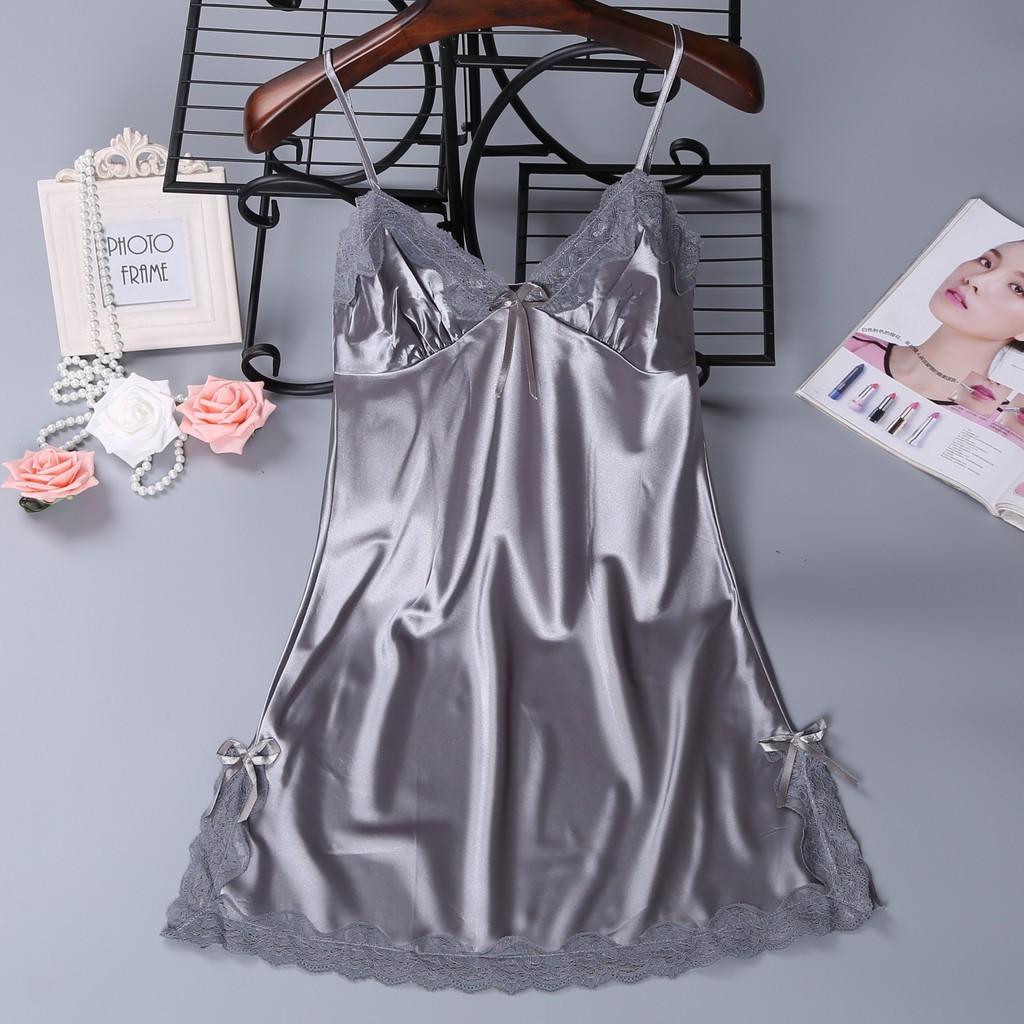 Yooyi Baju Tidur Wanita Daster Korea Dress Sexy Lace Mesh Babydoll Women Silk Satin Lingerie Dan G String Perempuan Seksi Mini Nightdress 001