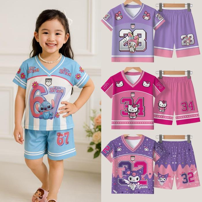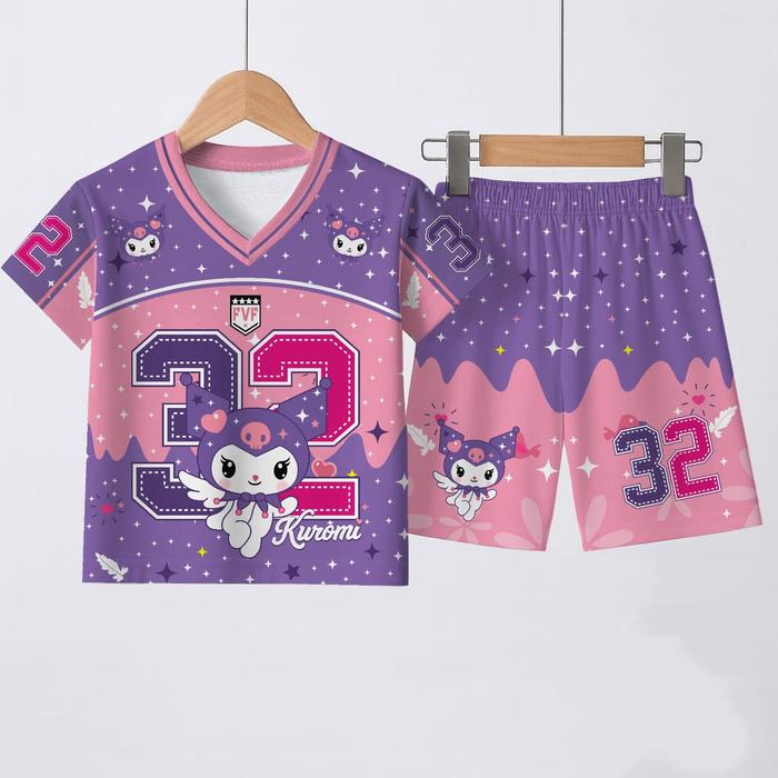 Setelan Jersey Anak Perempuan/Setelan Baju Anak Cewek V01/Setelan Bayi - Print.V01 Kuromi32/Ungu-Pink, No.2 2 Tahun