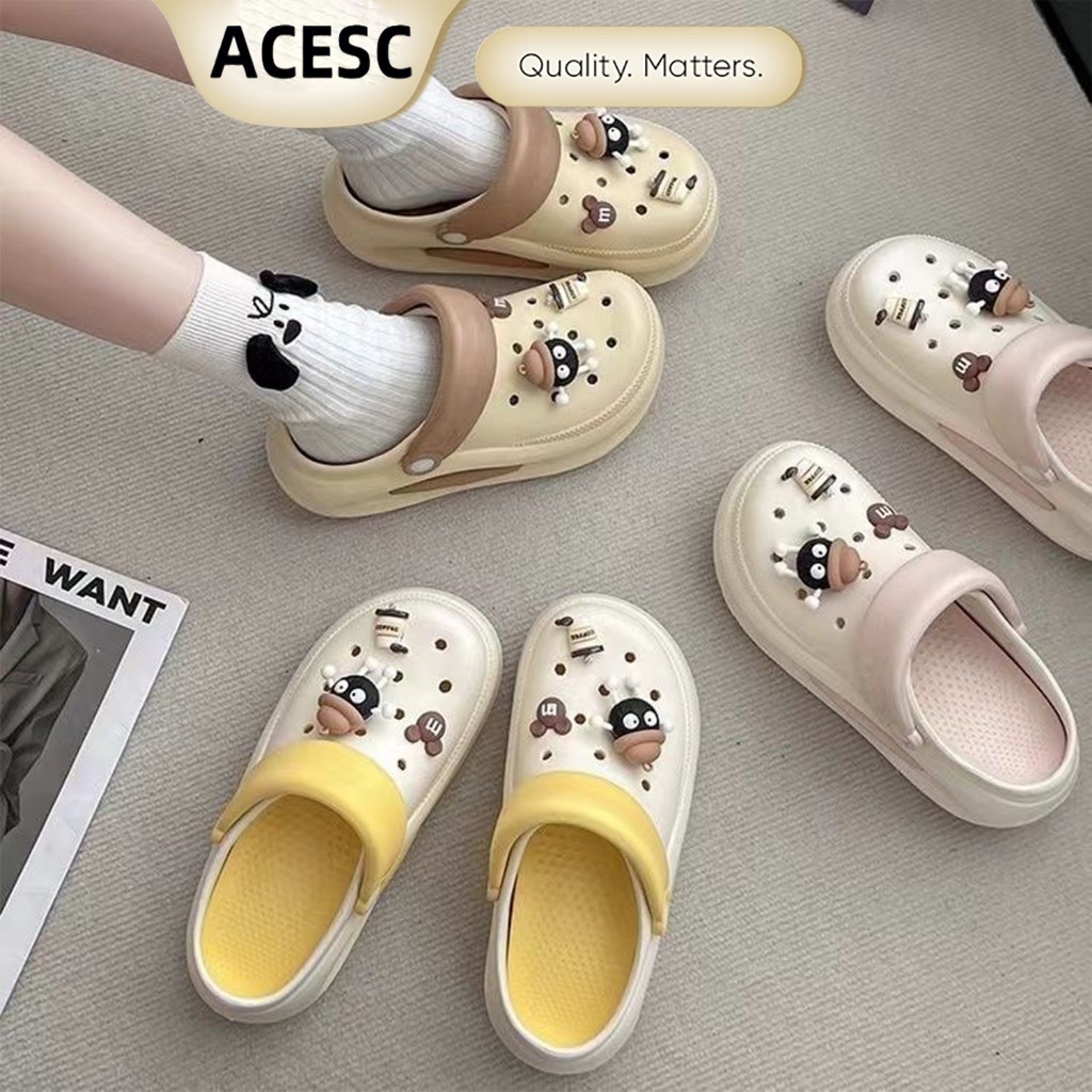 ACESC Sepatu Sandal Wedges Jibbitz 6CM Sepatu Sendal Fuji Lucu/Sandal Kekinian/Sendal Baim