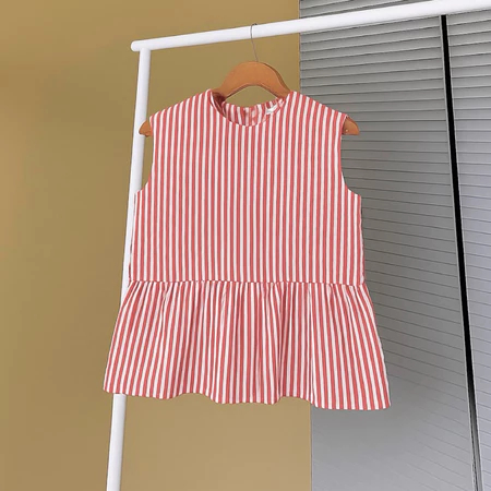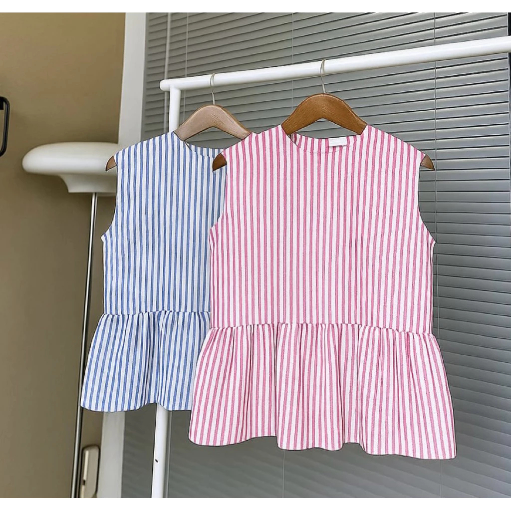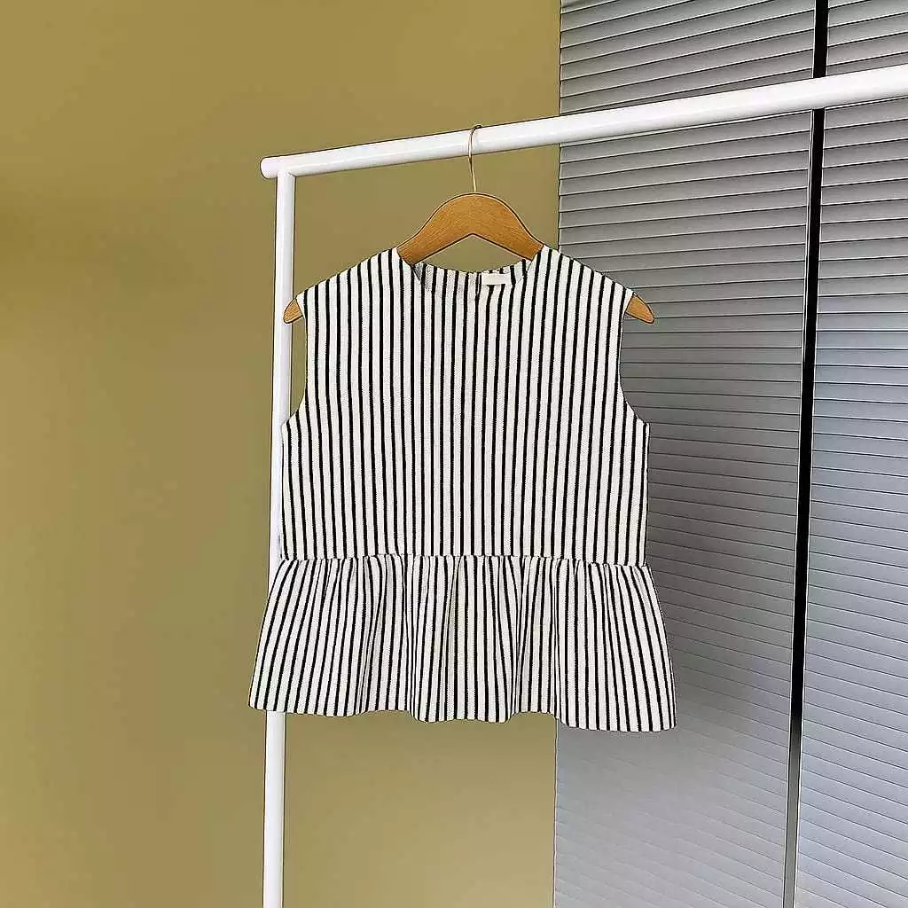 Amora Vest Inner Peplum Top Inner Cardigan Stripe Blouse Top Balon Korean Style