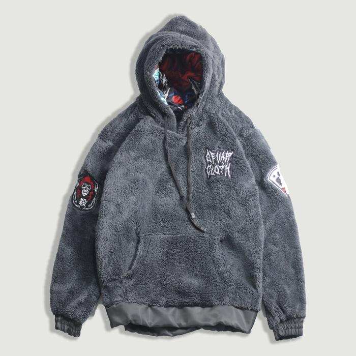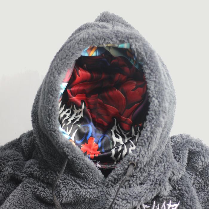 Gevar - Hobu Jaket Hoodie Bulu Sherpa Tebal Premium Bulu Printing Pria Sweater Hoodie Bulu Halus Dan Nyaman Bordir Distr