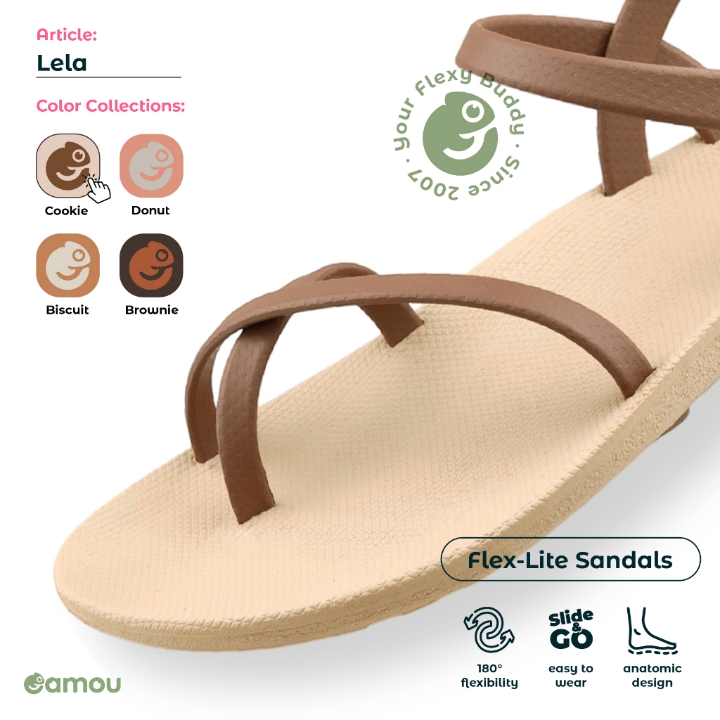 Lela Sweets Sandal Tali Silang Anti Air Sandal Wanita Terbaru Nyaman Full Karet Tidak Licin - Camou