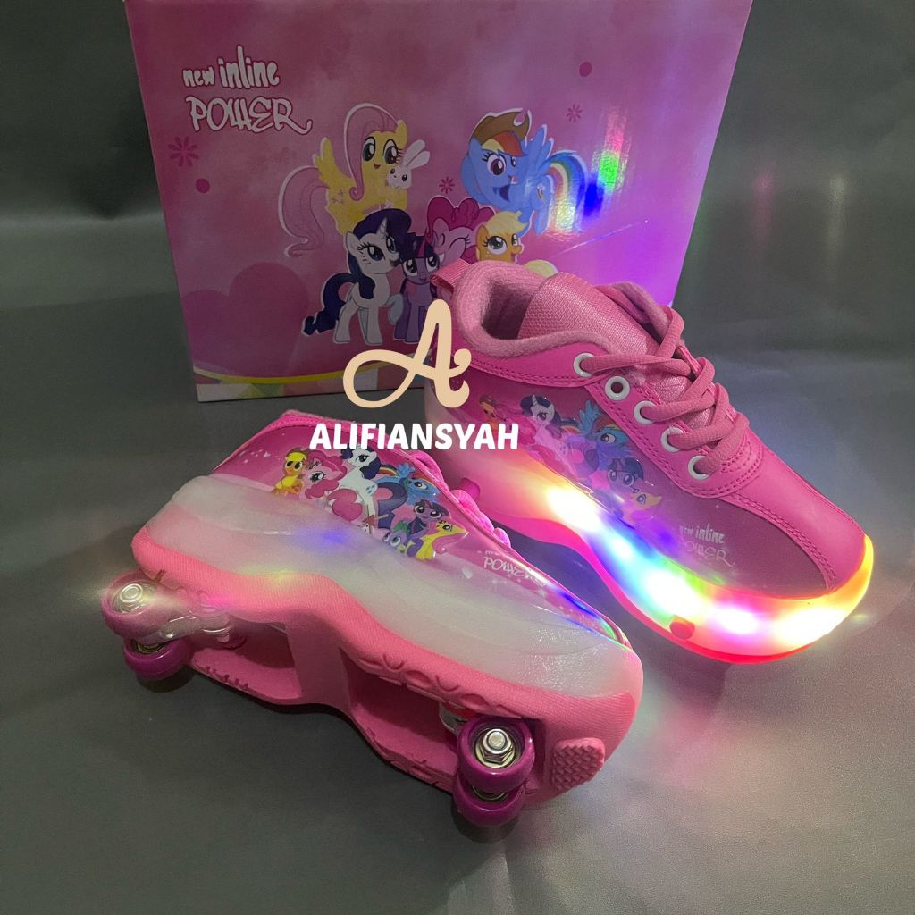 Sepatu Roda Anak Roda 4 el Mobil Pemula Full Menyala Sepatu Roda Karakter 2 in 1