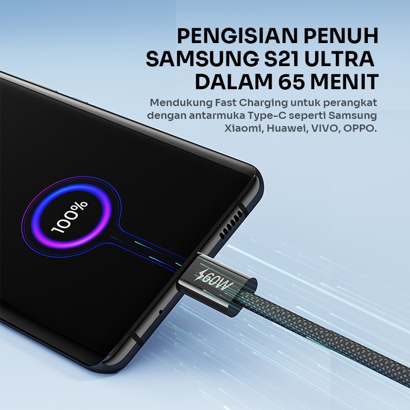 ROBOT Data Cable Fast Charging Kabel Data Charger Type C-to-C Iphone/Samsung RCC60W Original - Garansi 1 Tahun
