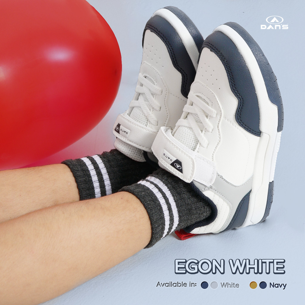 Dans - Sepatu Anak Laki-Laki - Egon (Putih) (Sd) | Sneakers Stylish Berwarna Cocok Untuk Jalan