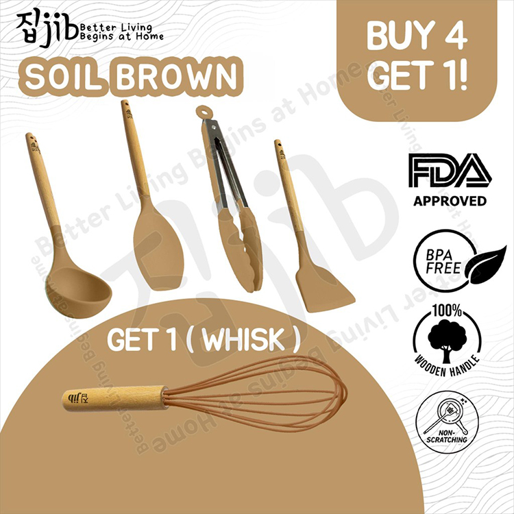 JIB Utensil Silicone Buy 4 Get 1 / Bundle Utensil Silikon / Sutil Silikon Tahan Panas Gagang Kayu / Kitchenware