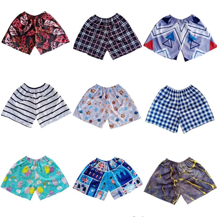 Paket 5 Pcs Celana Boxer Premium | Celana Santai Pria Wanita | Boxer Motif | Celana Pendek | Celana Kolor - 3 Pcs Motif