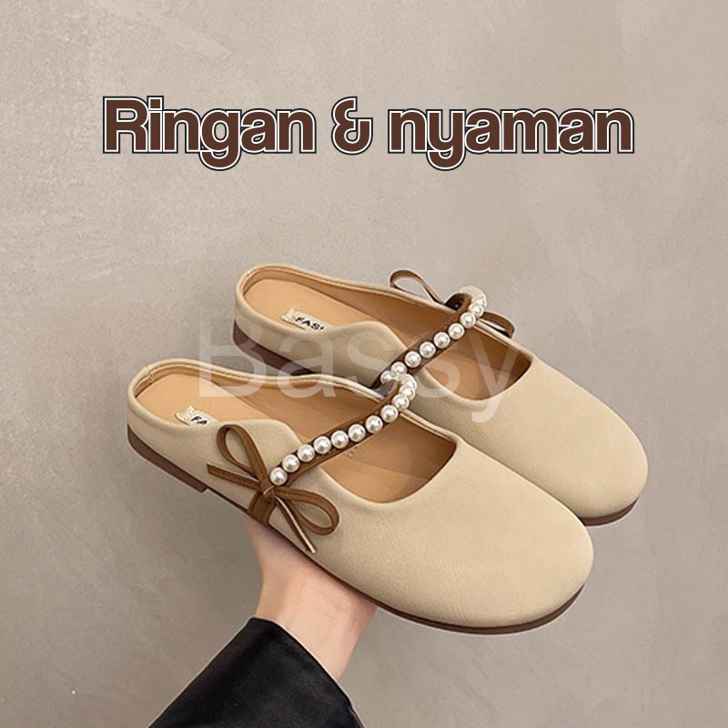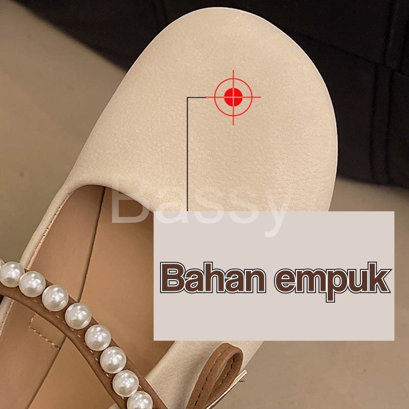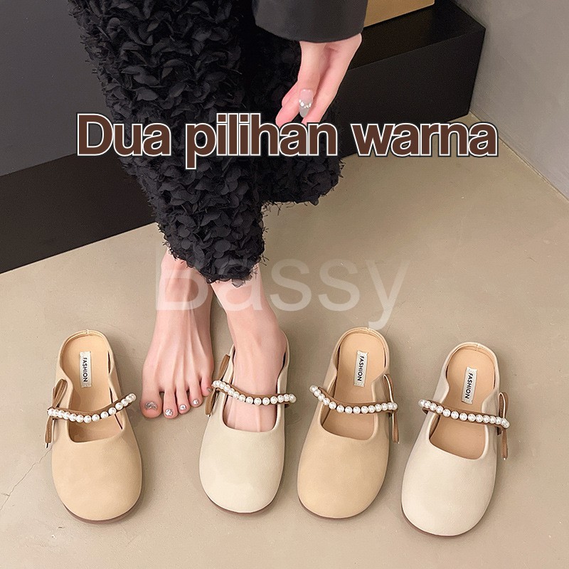 BA55Y Slip On Wanita Terbaru Sandal Selop Strap Mutiara Senda Flat Karet Wanita HSN570